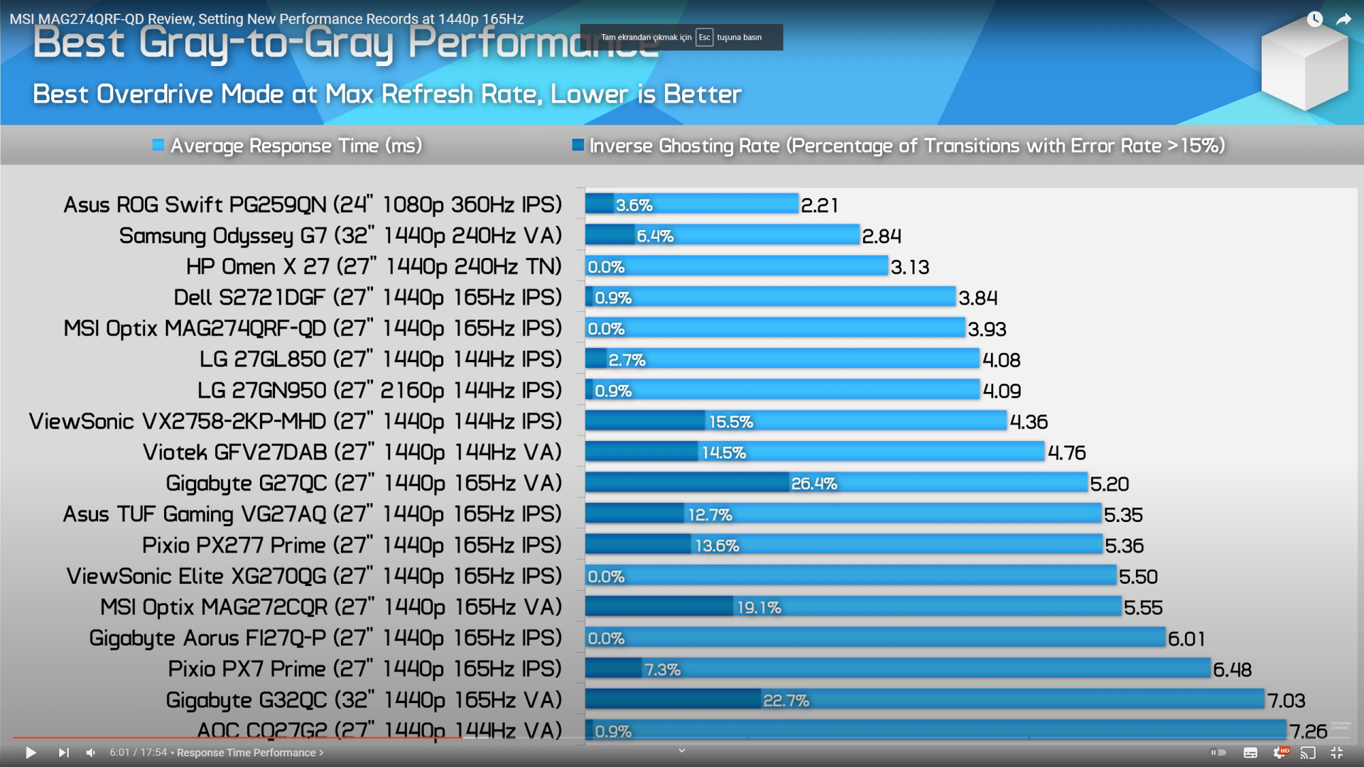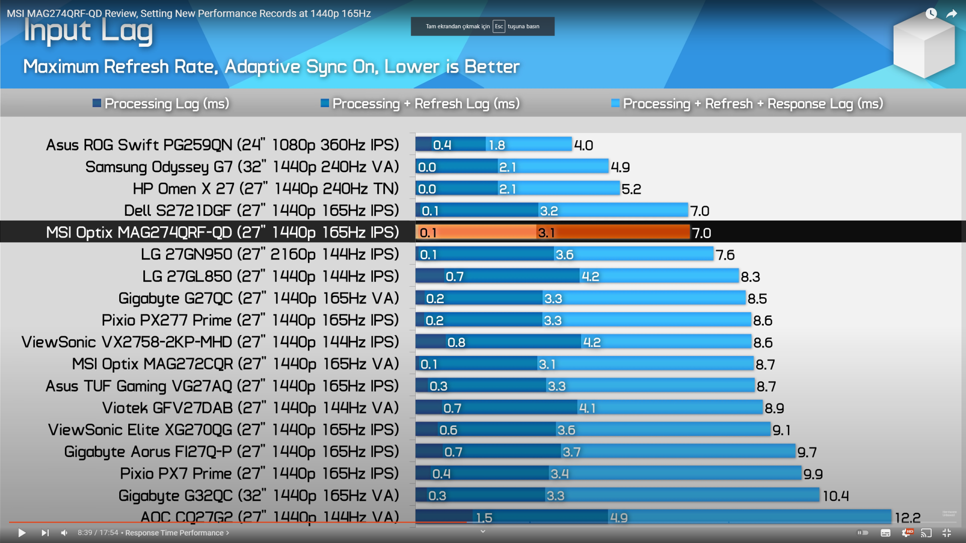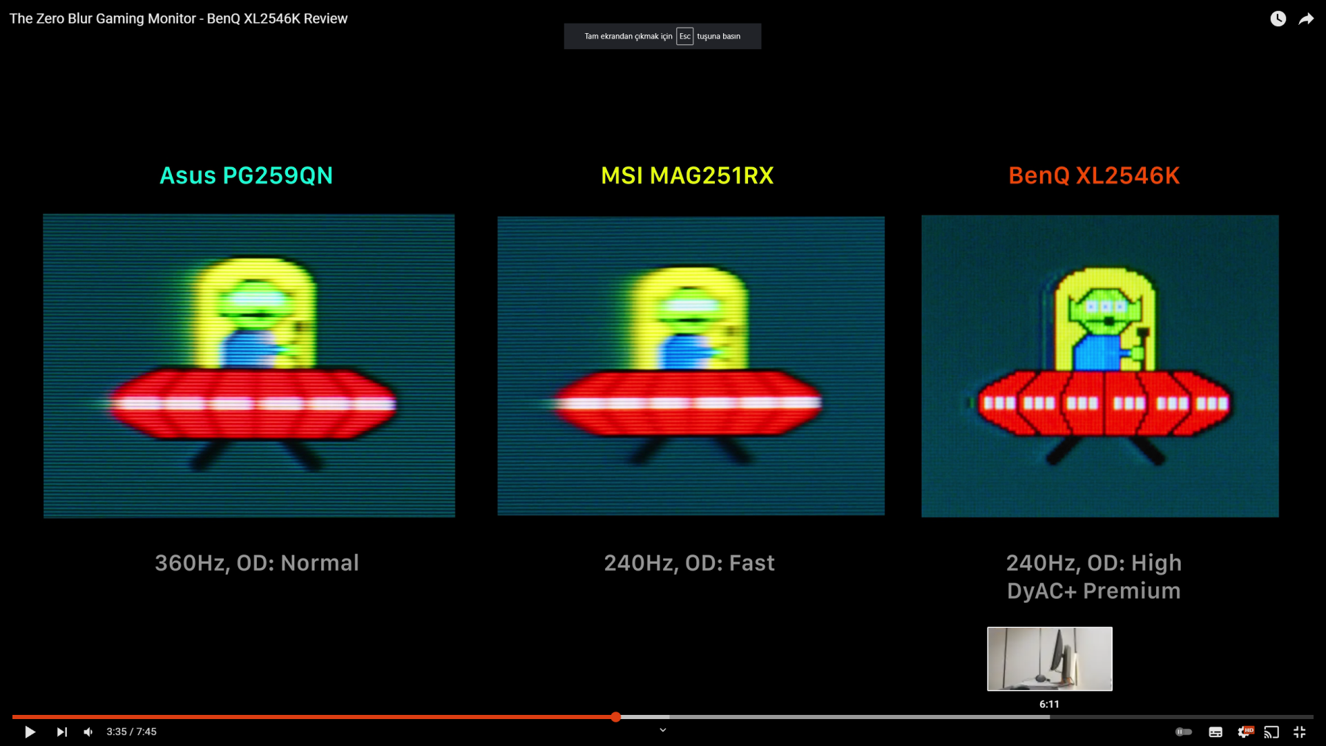 Yukarıda attığım videoları izlerseniz monitörlerin hangi ayarlarda kaç ms verdiklerini görürsünüz. Ayrıca farklı monitörlerle karşılaştırmaları da var.