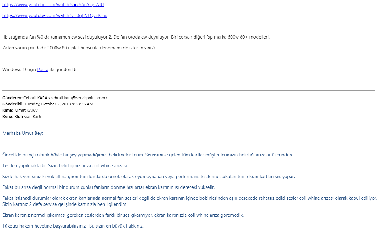 Ben servispointe gönderdiğim ve geri dönüş olarak videoda hiçbir sorun göremedik dediği videoyu buraya bırakayım sen anla. Videoda özellikle fan ayarımı 0'a cektim cikan ses tamamen coil whine sesi.