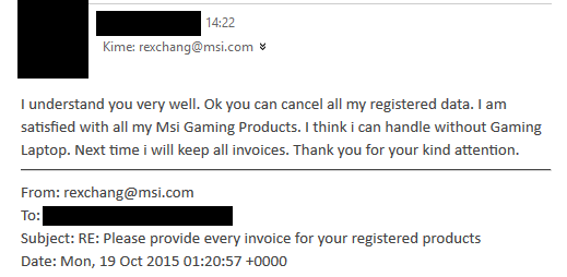 Son olarak da msi a laptop ürün puanlarını iptal etmeleri için mesaj gönderdim.