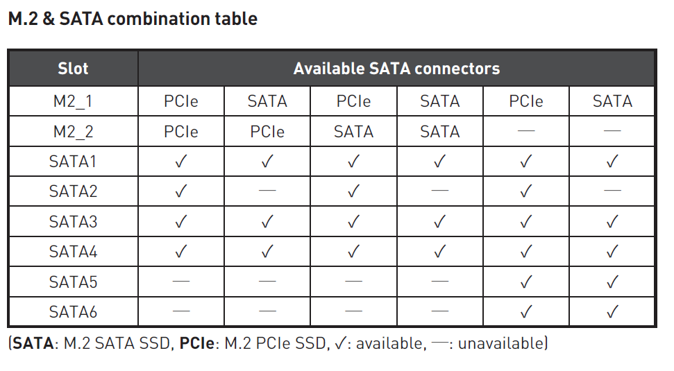 Anakart kitapçığına göz atarsanız görülebilir. M.2 portlarına SATA protokolü kullanan disk takarsanız normal SATA portlarıyla paylaşımlı olduğu için onları devre dışı bırakıyor.