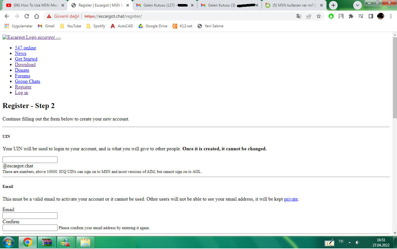 Login ekranını hallettim sorun benım klavyemdeki yanlıs karakterden kaynaklanıyormuş, şu anda msn inmekte kullanıcı adım ise, doganozen@escargot.chatSiteye kayıt olduğunuz kullanıcı adı nedir? Örnek verelim şöyle gireceksiniz: Adam_44@escargot.chat şifre: Denemeşifre123.