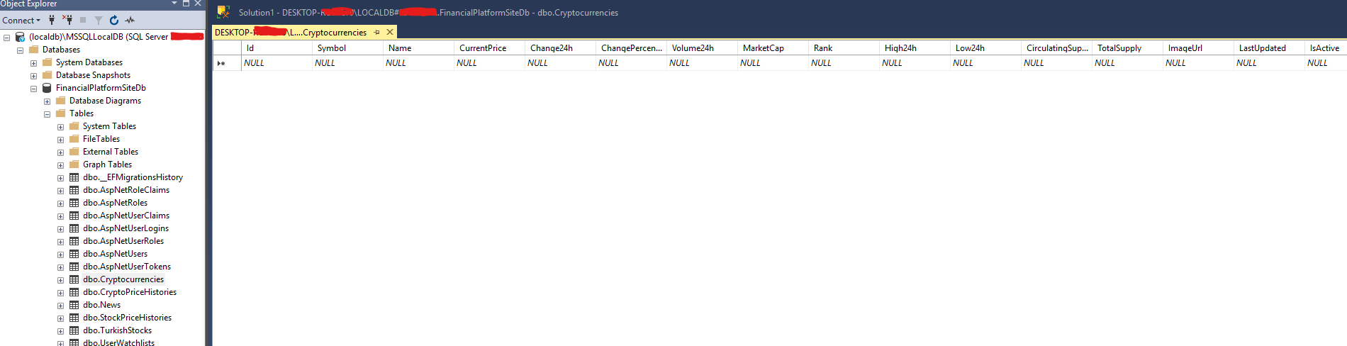 "DefaultConnection": "Server=(Localdb)\\MSSQLLocalDB;Database=FinancialPlatformSiteDb;Trusted_Connection=true;MultipleActiveResultSets=true;TrustServerCertificate=true"
