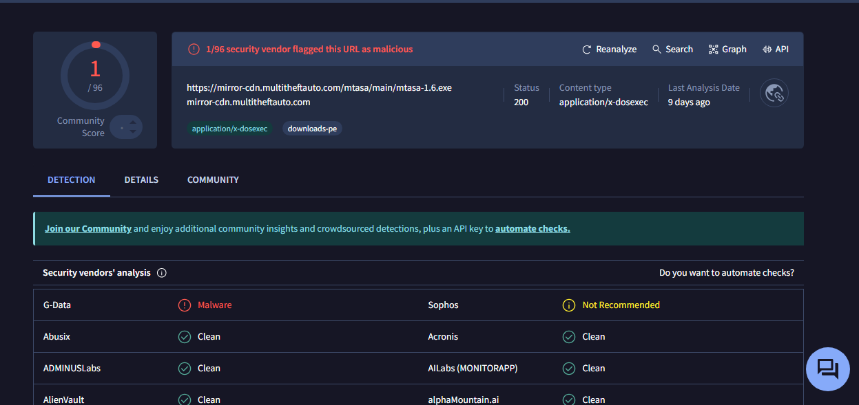 Başka bir konuda dikkatimi çekti ve VirusTotal'e attığımda böyle çıktı. MTA virüslü müdür?