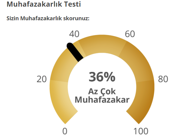 Muhafazakarlığın anlamına baksan iyi olur o zaman, bu test sadece din muhafazakarlığını içermiyor.Bazı soruları görünce muhafazakarlık ile alakası ne acaba diye düşündüğüm oldu.