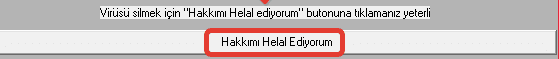 Virüsü yapan kişi sonradan pişman olup kendi kaldırma aracını yapmıştı. "Hakkımı helal ediyorum" butonuna basınca virüs siliniyorduVirüsü yapan kişinin virüsü temizleme yazılımını kullanmak kaçıncı seviye?