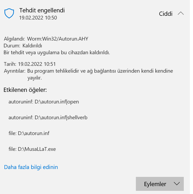 Kaspersky ile sistemine ve USB'ne tarama yap derim. Sorun çözülmezse virüsün yapımcısı silmek için bir yazılım hazırlamıştı diye biliyorum.