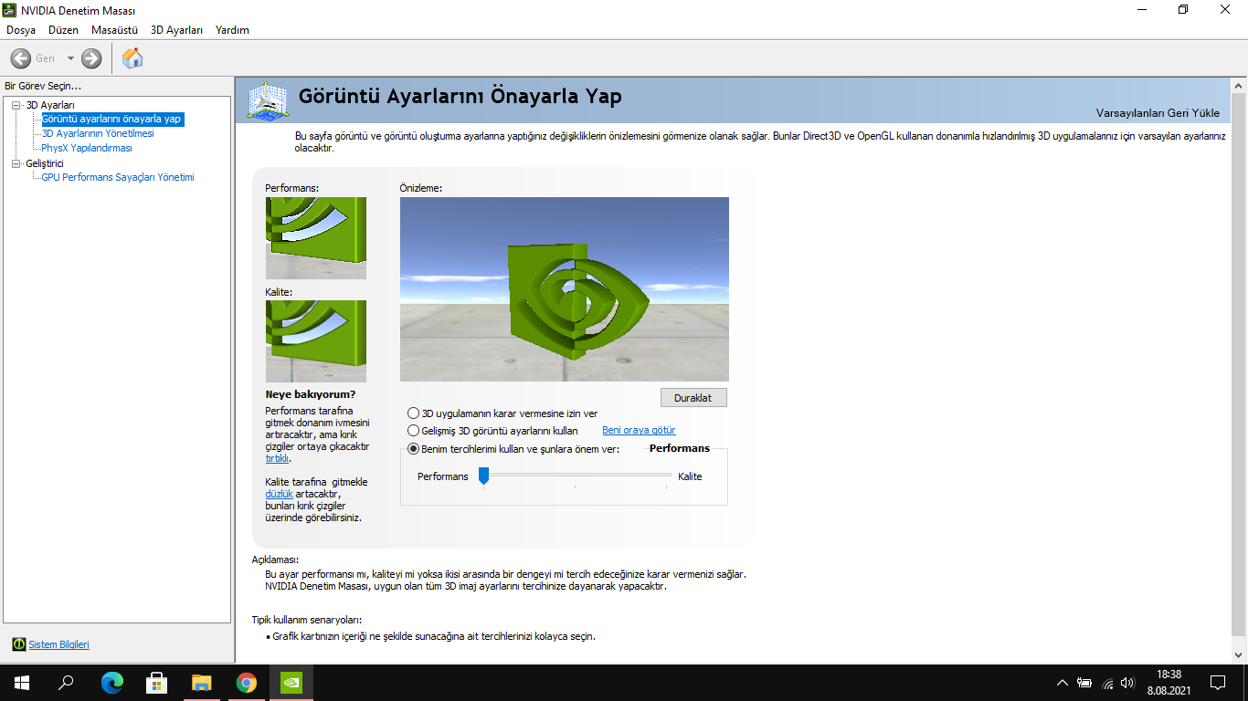 Masaüstüne sağ tıklayıp NVIDIA denetim masasını açın. Resimleri atacağım bu ayarları yapın performans artacaktır.