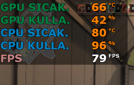 - FPS 100'lerde fakat Valorant'ın kendi FPS göstericisi 140-150'lerde gösteriyordu.
