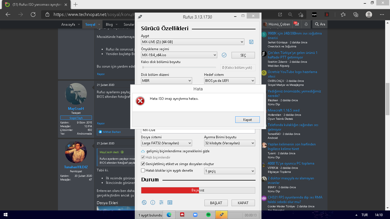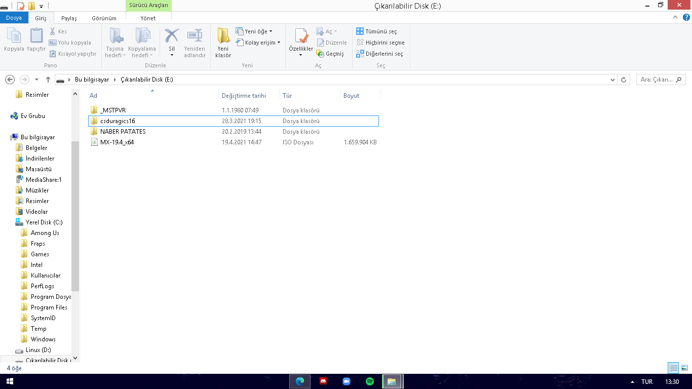 Hocam içine attığınızda olmaz. Normal dosya atar gibi atmışsınız siz. Rufus programı ile yazdıracaksınız. İçindeki bilgiler silinecek. Flash belleği PC'ye takıp bana dosya gezgininden SS atabilir misiniz?
