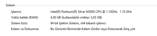 Görsel gördüğünüz özelliklerde bilgisayarımız var. Biz bunu MediaMarkt'ta 3000 liraya aldık. Bize iş bilgisayarı demişlerdi ama Adobe uygulamalarını bile kaldırmıyor. Bilgisayarım neden böyle? Düzeltebilir miyim? Geçenlerde arkadaşlarımla Roblox Studio'da oyun yapıyorduk. Crash yazıp durmadan atıyor ve bilgisayarı tekrar başlatmam gerekiyor. Zar zor oyunu bitirdik ama kastığından kendi yaptığım oyunu oynayamıyorum. Bir çok yöntem denedim. Lütfen yardım edin.
