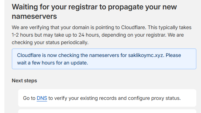 Saganetwork sitesinden domain aldım fakat kendilerinin değişmediğini söyledi ben saganetwork sitesinden değiştim fakat Cloudflare'de hâlâ fotoğraftaki gibi görünüyor tam ne yapacağımı anlamadım.
