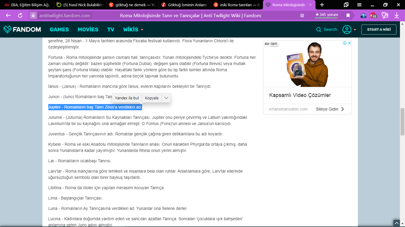 Lakin adınız bu tanrının adı(benimki mesela tanrı adı, evet kimliğimde de adım Mars.) biraz uzun, bu yüzden Yunan ve Roma tanrılarına bakacağız.