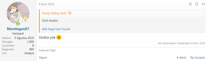 UBerk Gigapat Sosyal Tayfı Zamanın Tanığı Katılım 10 Ekim 2018 Mesajlar 6.954 Makaleler 8 Çözümler 114 3 Kasım 2020 #3 İnceledim. Mesajınızın düzenlenmeden önceki hali şu şekilde: stokta yok Genişletmek için tıkla...