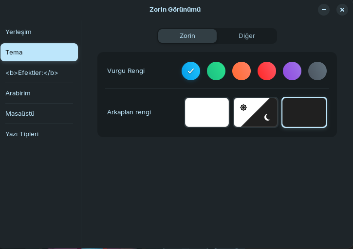 Burada en temel kişiselleştirme ayarını görüyorsunuz. Windows dahil neredeyse tüm işletim sistemlerinde var. Ondan dolayı burayı geçiyorum.