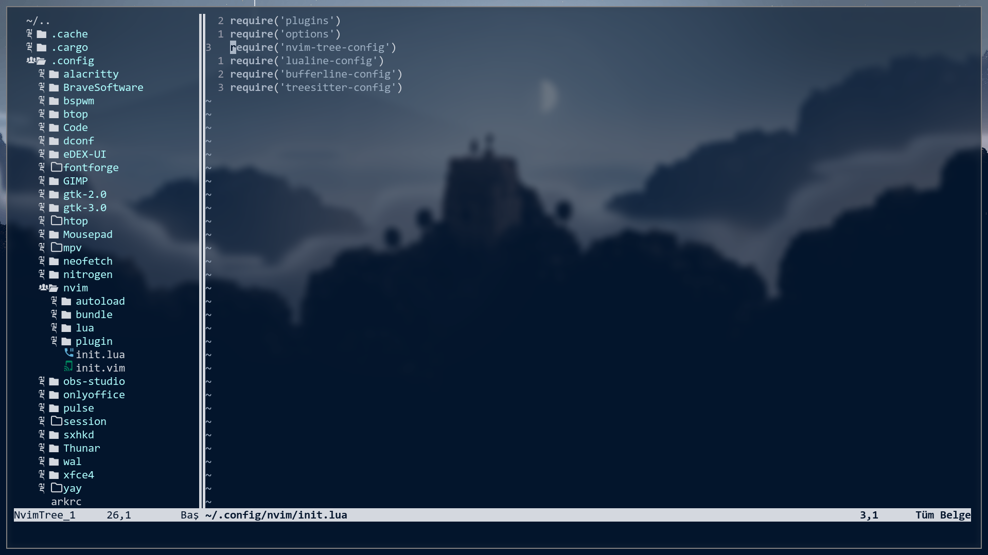 Pathogen halledemedim şu an packer var. Klasör ağacını açmak için her Neovim açtığımda :NvimTreeToggle yazmam gerekiyor.