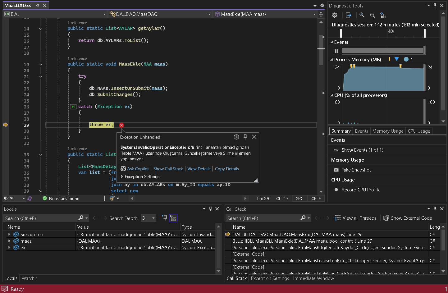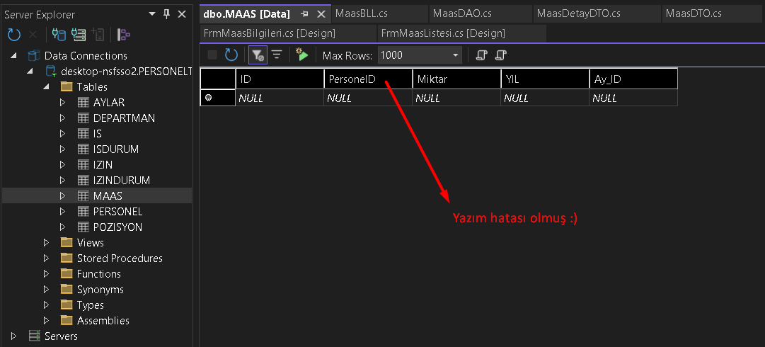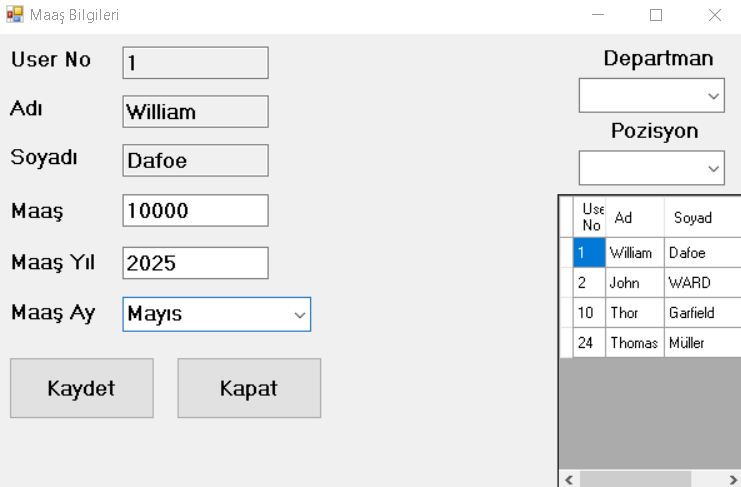 Videoda izlediğim Personel Takip Otomasyonu uygulamasının aynısını yapmaya çalıştım. (Videoya baka baka yapmama rağmen ufak bir şey kaçırmış olabilirim.)