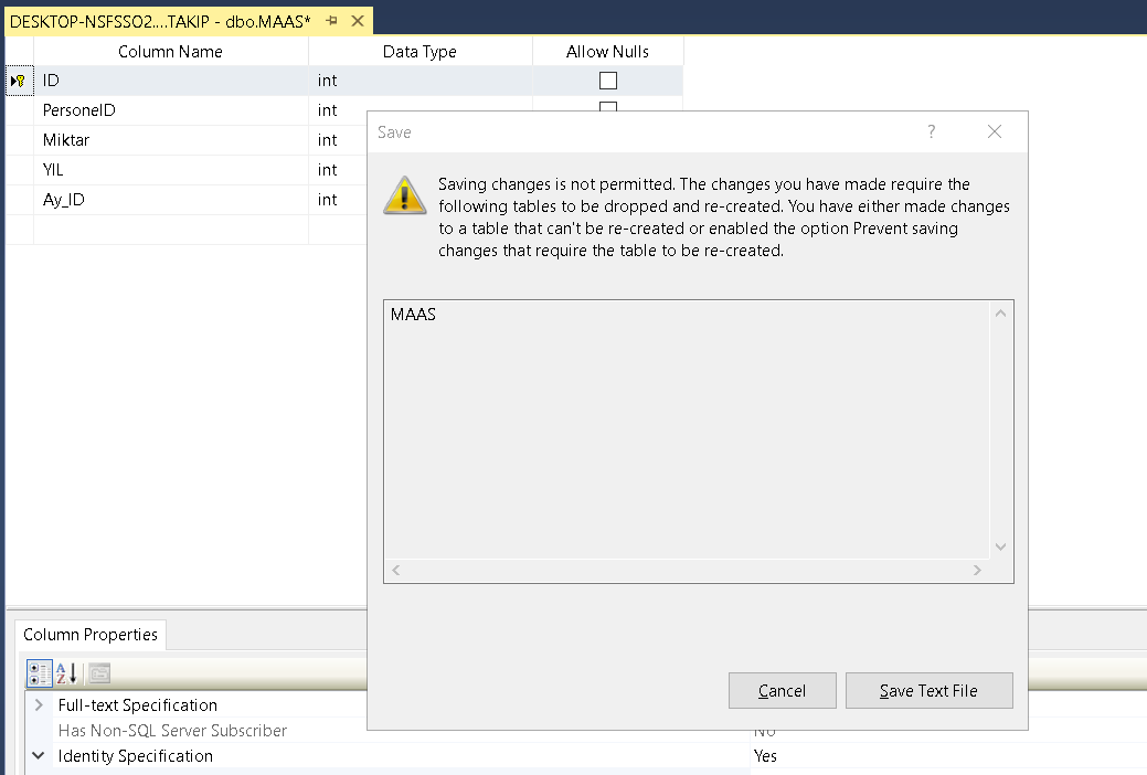 Kaydet butonuna bastığımda bu hatayı alıyorum: