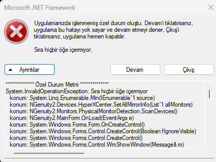 Görselde belirttiğim gibi sürekli bu hatayı alıyorum feci baydı. .NET Framework falan kurulu anlamadım bilen var mı çözümünü?