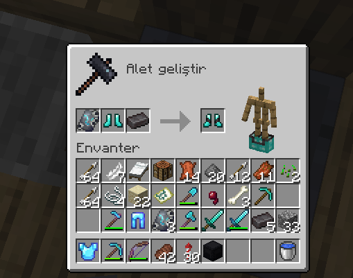 Arkadaşlar internetten baktığımda böyle yapılıyor deniyor ama resimde gördüğünüz gibi sadece set deseni yapıyor. Netherite set yapmıyor.