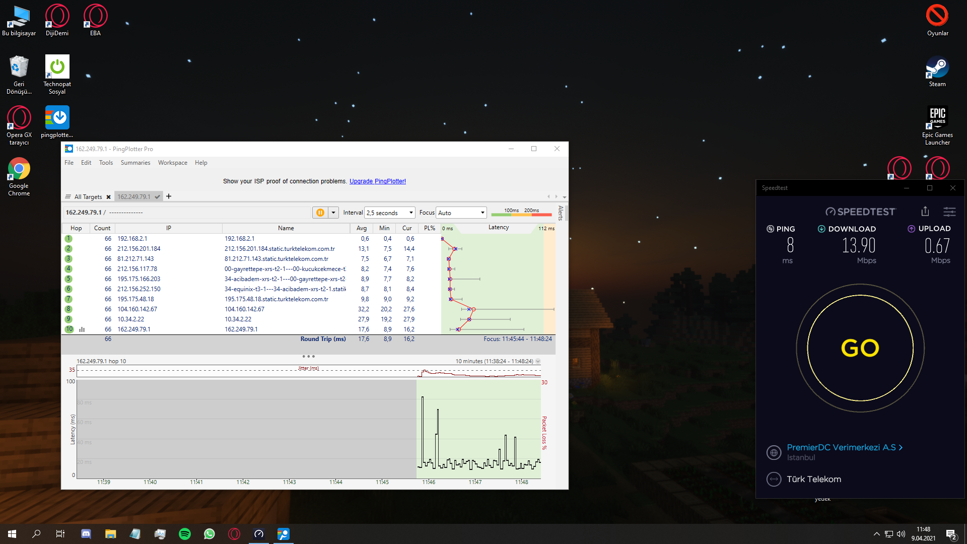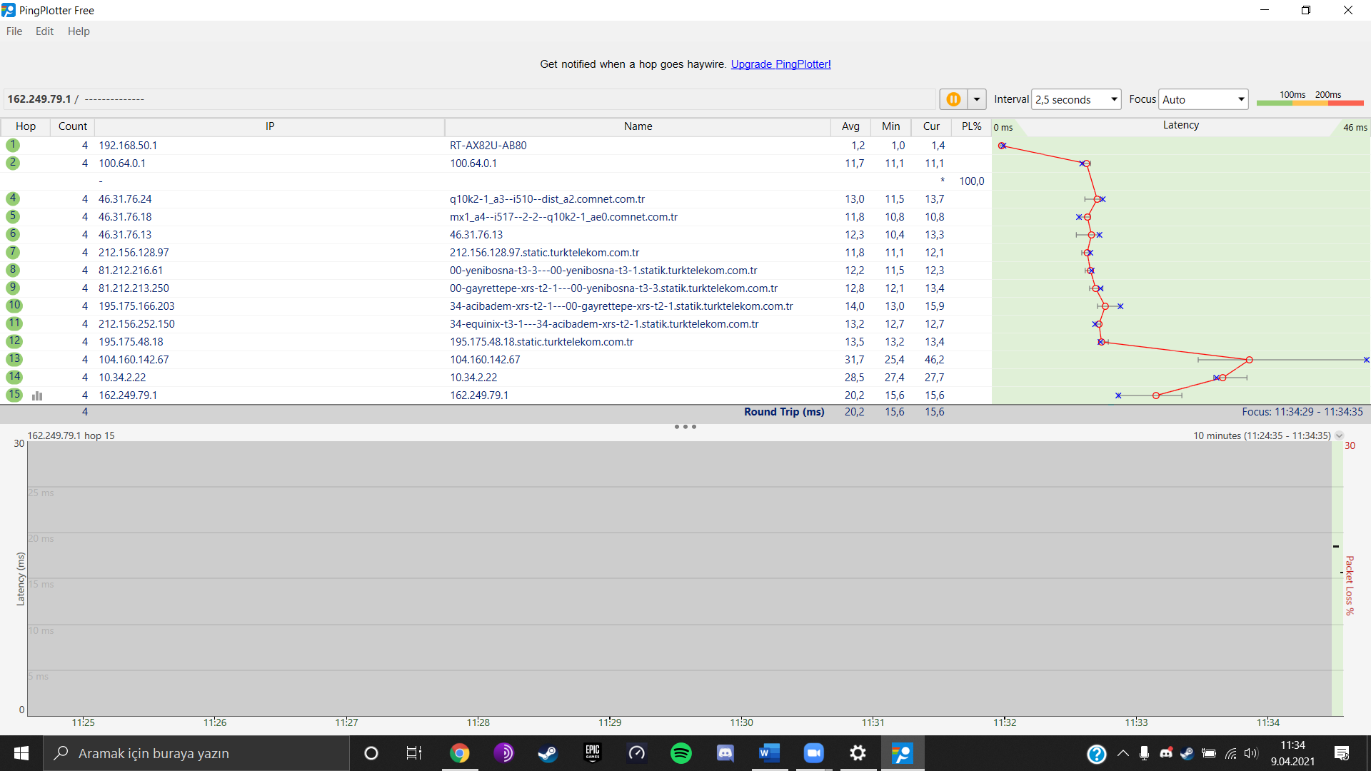 İsterseniz siz de yapın bir görelim. PingPlotter'ı kurun. 162.249.79.1 adresini yukarı yazıp başlatın.