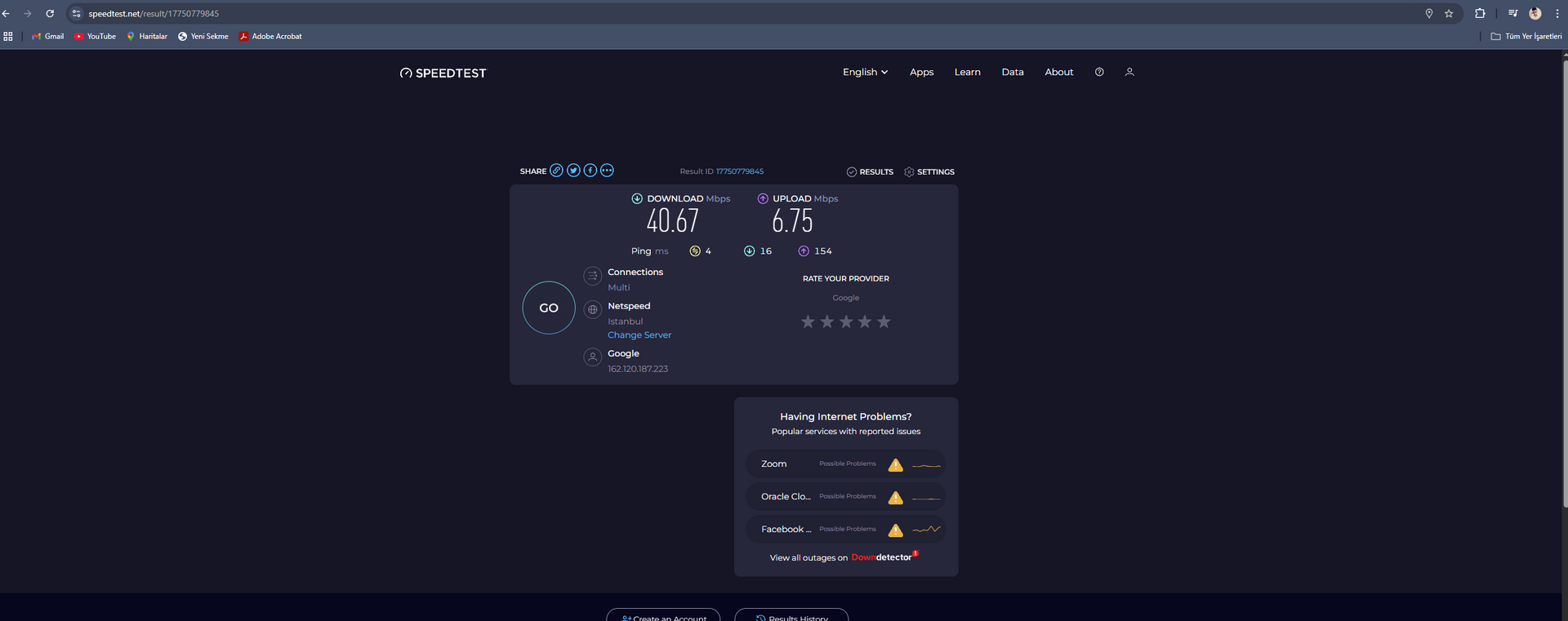 16.05.2024 tarihinden beri gün içerisinde ortalama 20-30 kere internet kopma sorunu yaşıyorum. Daha öncesin 2 sene boyunca tek bir kere bile internet kopma sorunu yaşamadım. Ve bu süre zarfından beri 75 Mbps olan internet hızım 40 Mbps düştü. Netspeed ile görüştüğümde altyapı şu an size Max olarak bunu sağlamakta biz 79 Mbps olarak size sunuyoruz dediler. Modemden olabileceğeni düşündüğüm için başka bir modem ile denedim maalesef durum değişmedi. Bina içi kablolar yeni değişti ama bilemiyorum birileri ellemiş olabilir mi? Bu sorunu nasıl çözerim?