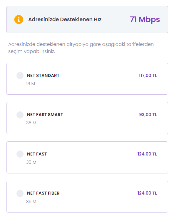 Merhaba hocam, geçiş yapmaya çalışıyorum. İnternet üzerinden yapmayı deniyorum ama bir yerde kafam karıştı. 100 Mbps internet seçeneği bulamadım, yardımınıza ihtiyacım var.