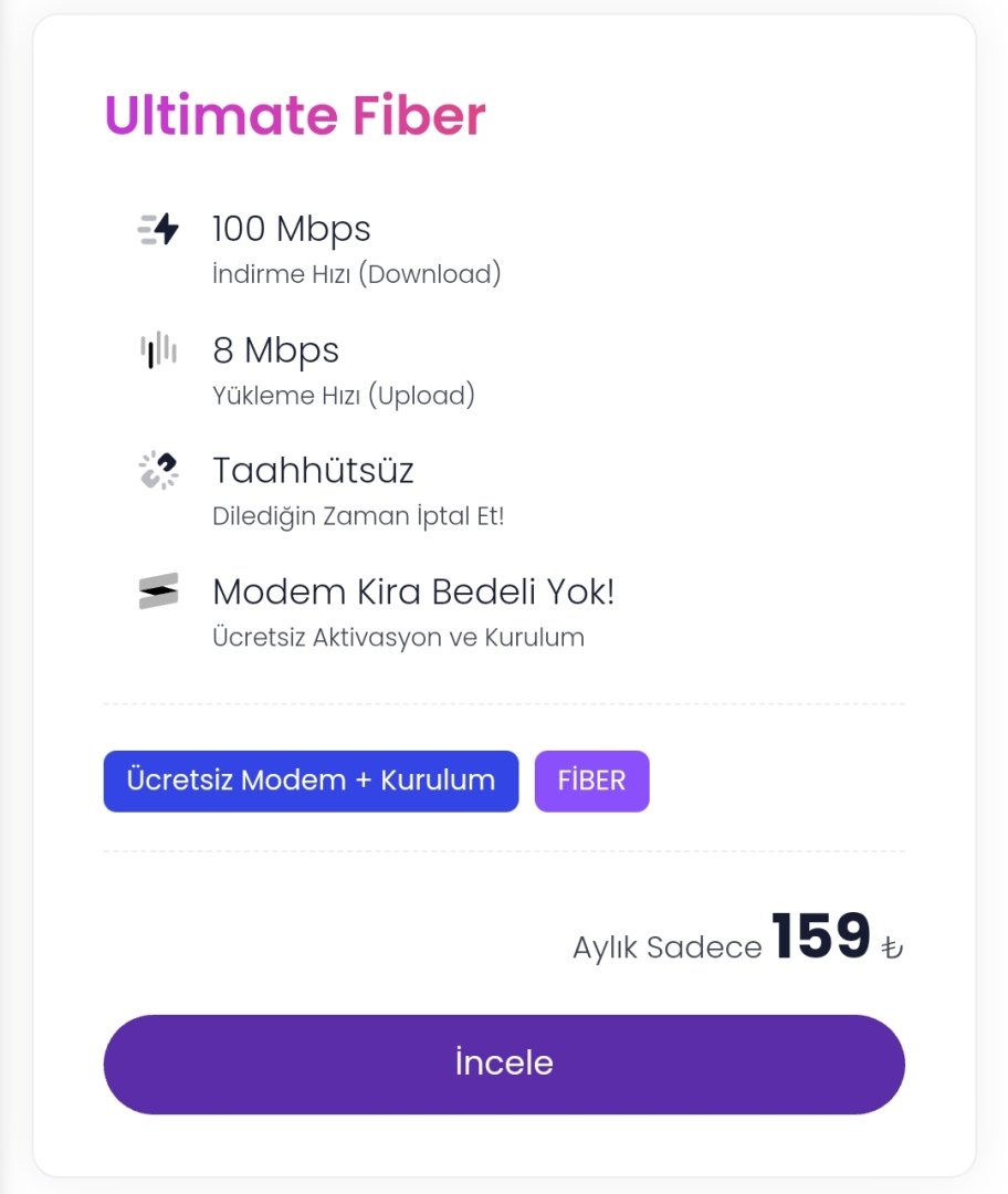 An itibari ile hayır fiber ve fiber paketlerden yararlanamazsınız. VDSL hizmetinden yararlanabilirsiniz.