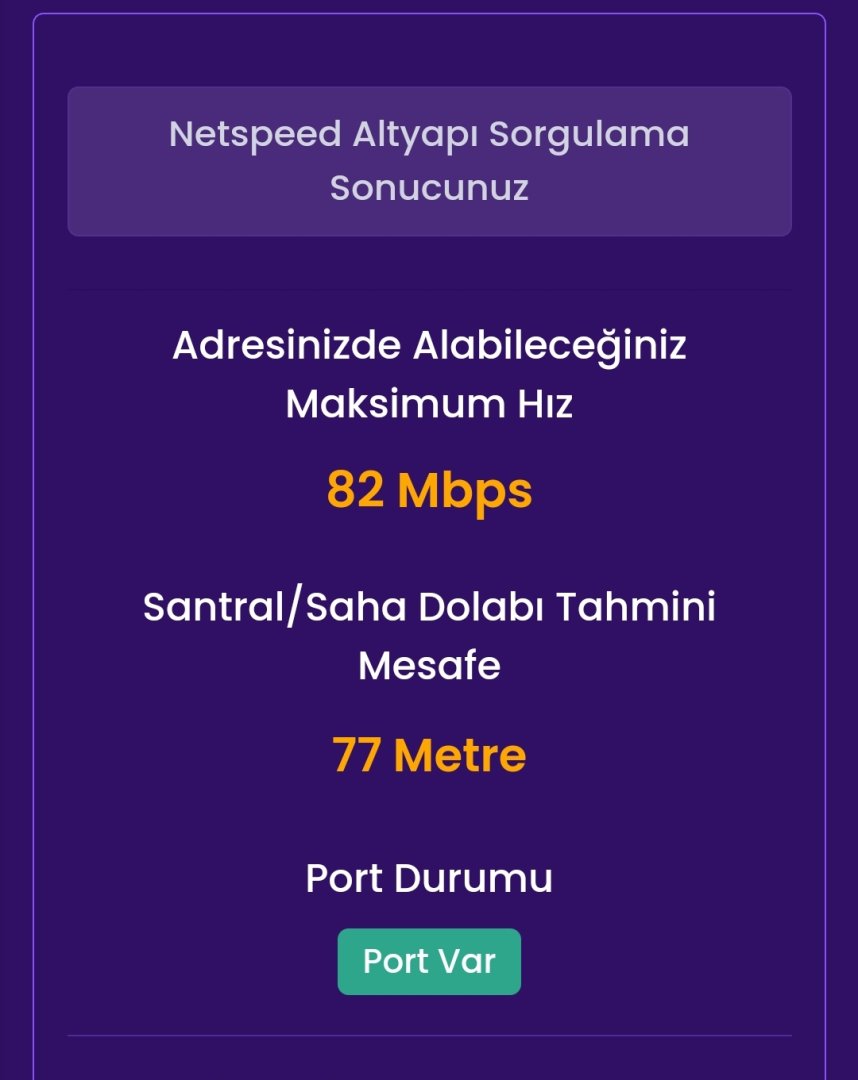 Buradan bir sorgu yaparsanız ve ekran görüntüsü ile paylaşırsanız size yardımcı olabileceğimi düşünüyorum. Adres bilgilerinizi gizlemenizi isteyeceğim.Hocam konu disi ama bir soru sormak istiyorum bu kabin neye benziyor sanirim bizim dairenin ikinci kattinda biz yaşıyoruz tam camimin altina sentral mi diye merak ediyorum~ ve evet download/upload//ping cok iyi aliyorum ve kullandigim internet DSL ama ne tur bir DSL bilmiyorum