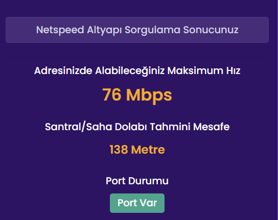 Bu şu an TurkNet'in adresimi girdiğimde verdiği altyapı sorgu sonucu