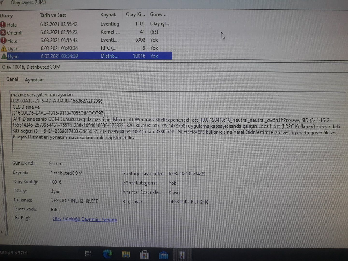 Windows 10 ve 7 için arama çubuğuna olay görüntüleyici yazarsanız çıkar. Oradan olay görüntüleyicisi ( yerel) deyip hatalar ve uyarılar pencerisini genişletin. Sorunun olduğu saate ve kaynağa bakın.