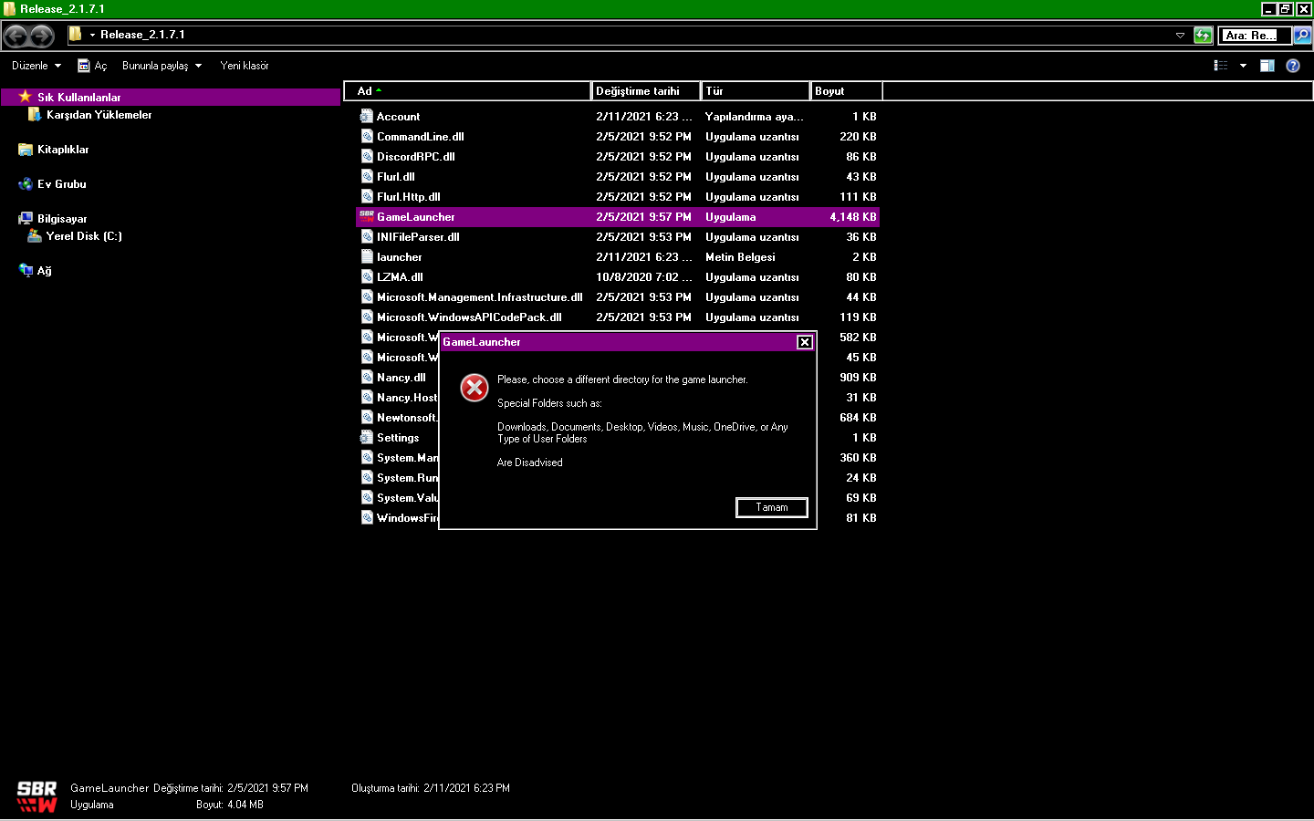 Oyuna klasör oluşturdum ama bu hatayı alıyorum. Nasıl çözebilirim?