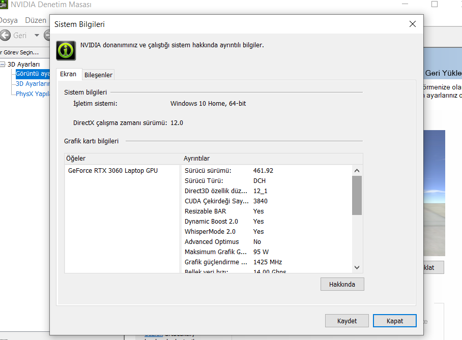Nitro 5 AN515-45 RTX 3060 ekran kartının Watt değeri nasıl öğrenilir?