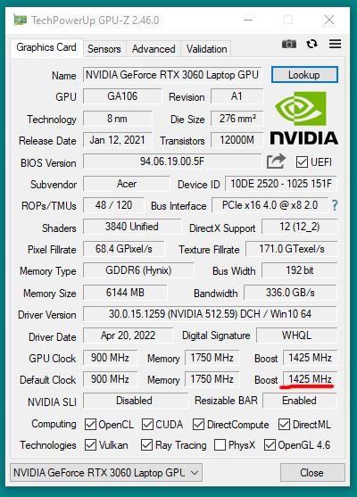 Mrb arkadaşlar, Acer Nitro 5 RTX 3060 95 wattlık ekran kartına sahip modele sahibim. Tabii ben öyle sanıyordum, bu laptopu alanda 80 değil de 95 wattlık ekran kartına sahip olduğunu düşünebilir. Ama MHz değerleri 80 wattlık 3060 Mobile ekran kartı değerleriyle örtüşüyor. Şunlara göz atar mısınız? Ben mi yanılıyorum.