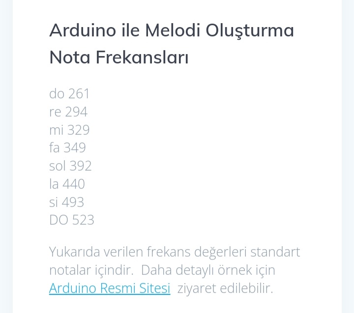 Arduino İle Melodi Çalmak İçerik gizle 1 Arduino İle Melodi Çalmak 1.1 Aktif Buzzer ve Pasif Buzzer Arasındaki Fark Nedir? 1.2 Arduino Buzzer Devresi Nasıl Yapılır? 1.3 Arduino İle Melodi Çalma Kodları Nasıl Yazılır? 1.3.1 Arduino ile Melodi Oluşturma Nota Frekansları 1.4 Arduino İle Melodi...