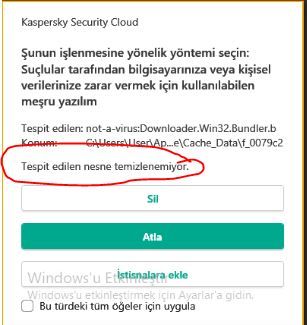 Bu yazılım temizlenemiyor gibi bir şey diyor.