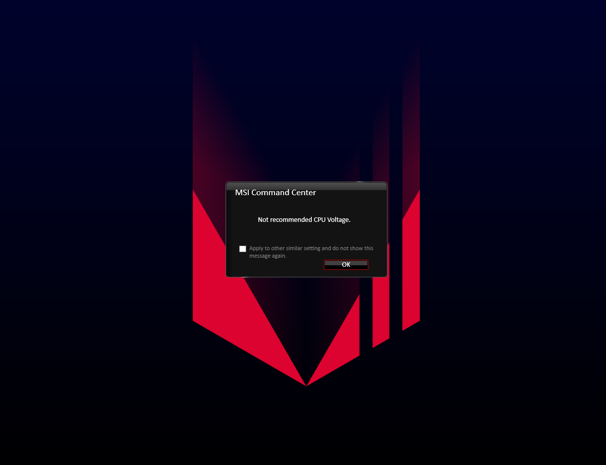 BIOS veya MSI Command Center üzerinden hiçbir oynama yapmadığım halde "not recommende CPU voltage" (tavsiye edilmeyen işlemci voltajı) uyarısı alıyorum.