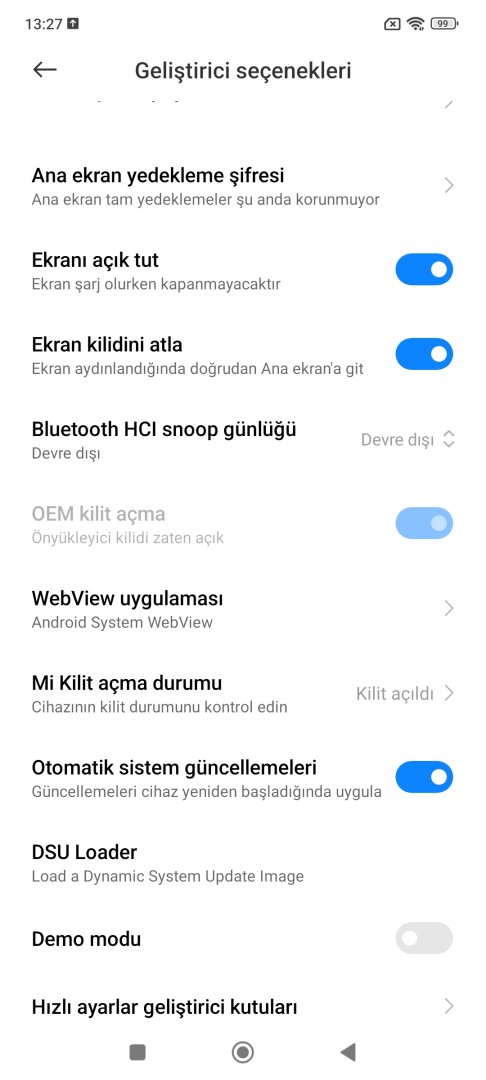 Ayarlar-Geliştirici seçeneklerinde bootloader kilidinin açılması için,xiomi telefonlarda sim kart takılı olarak başvuru yapacak ve 1 hafta sonra program ile kilidi açacaksınız.
