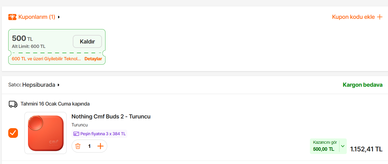 Sepetteki kuponla birlikte bu fiyata düşüyor; fiyatına göre gerçekten mükemmel bir ürün, değerlendirebilirsiniz.