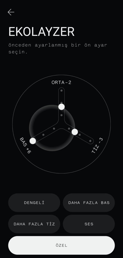 Ekolayzer'ı basit bırakılmış. Nothing ear 2024 modelinde daha detaylı ekolayzer yapılabiliyor.