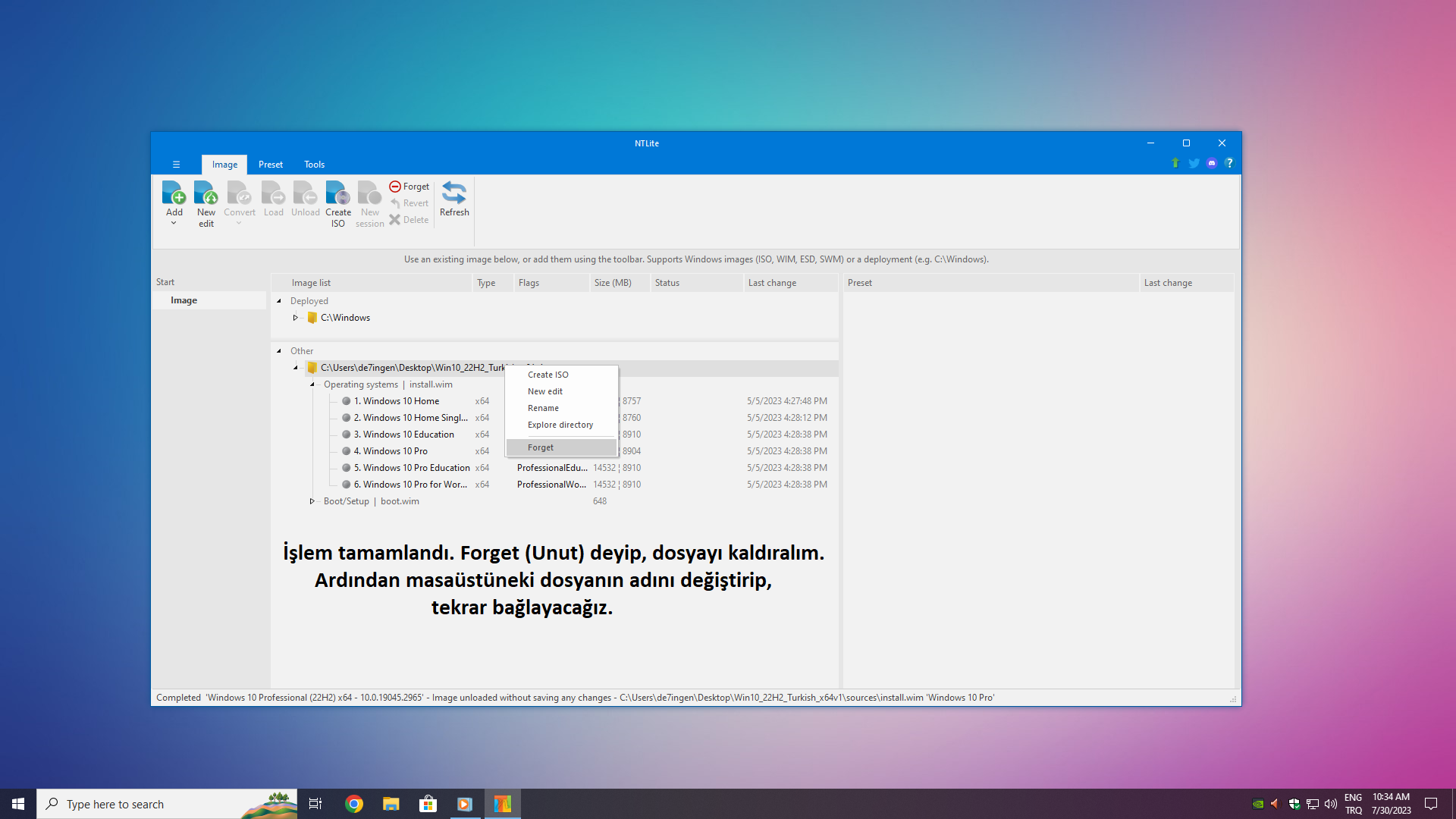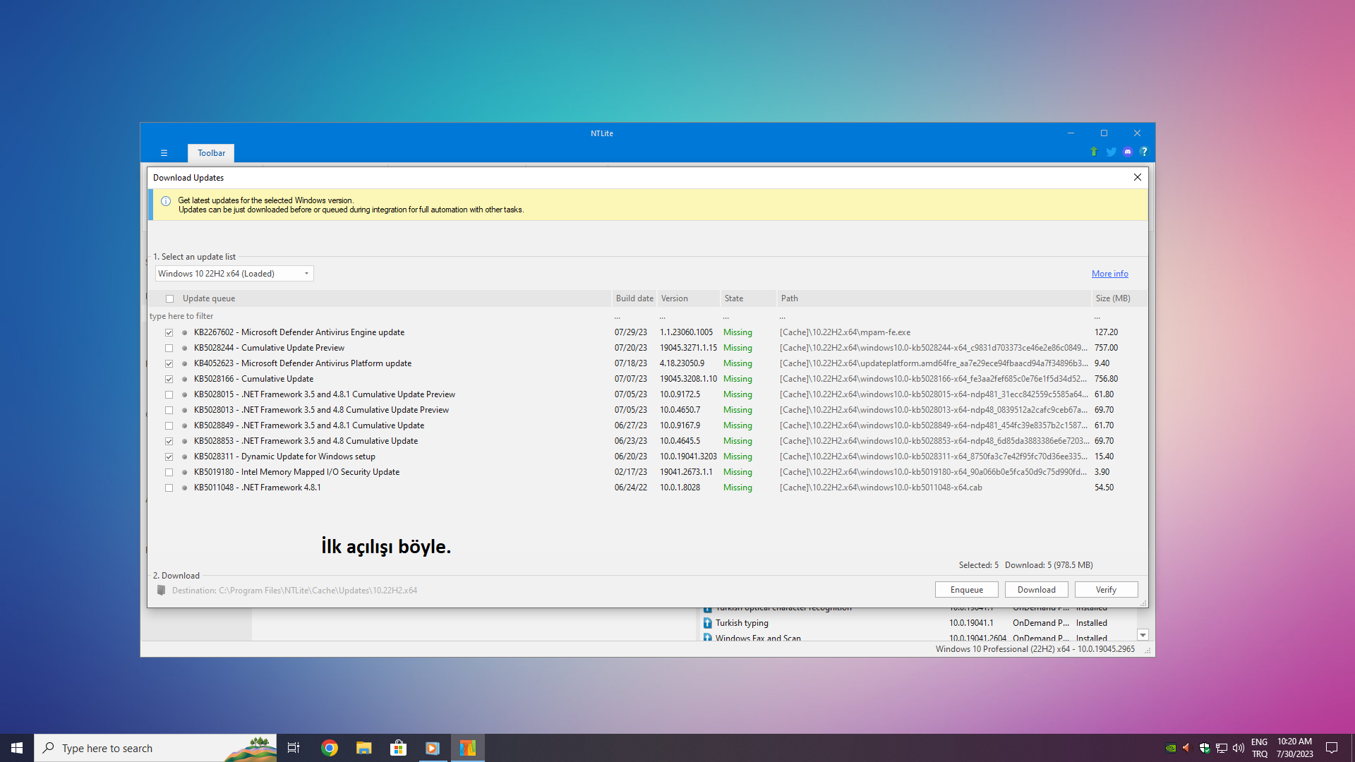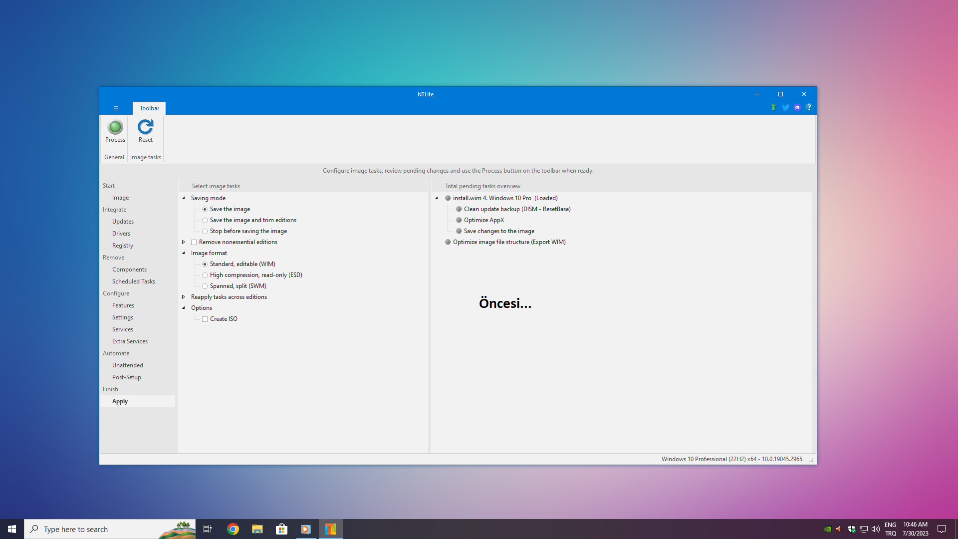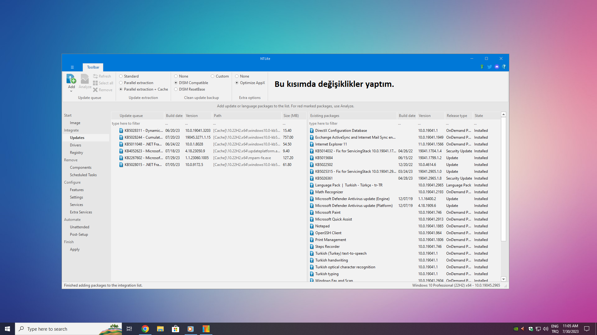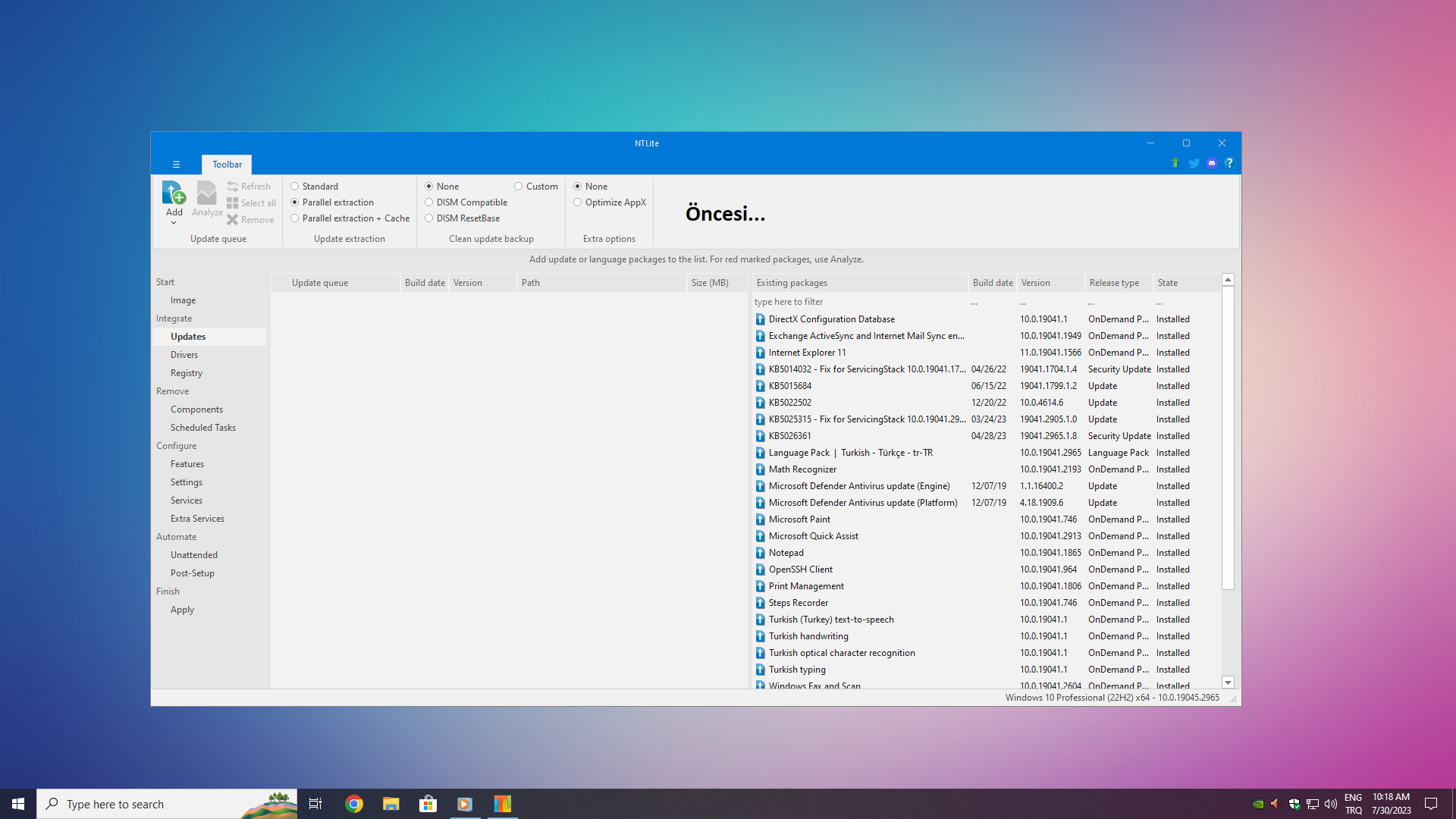 Not = kullandığım Windows dili İngilizce olduğu için, NTLite dil ayarı da İngilizce kalmıştır.