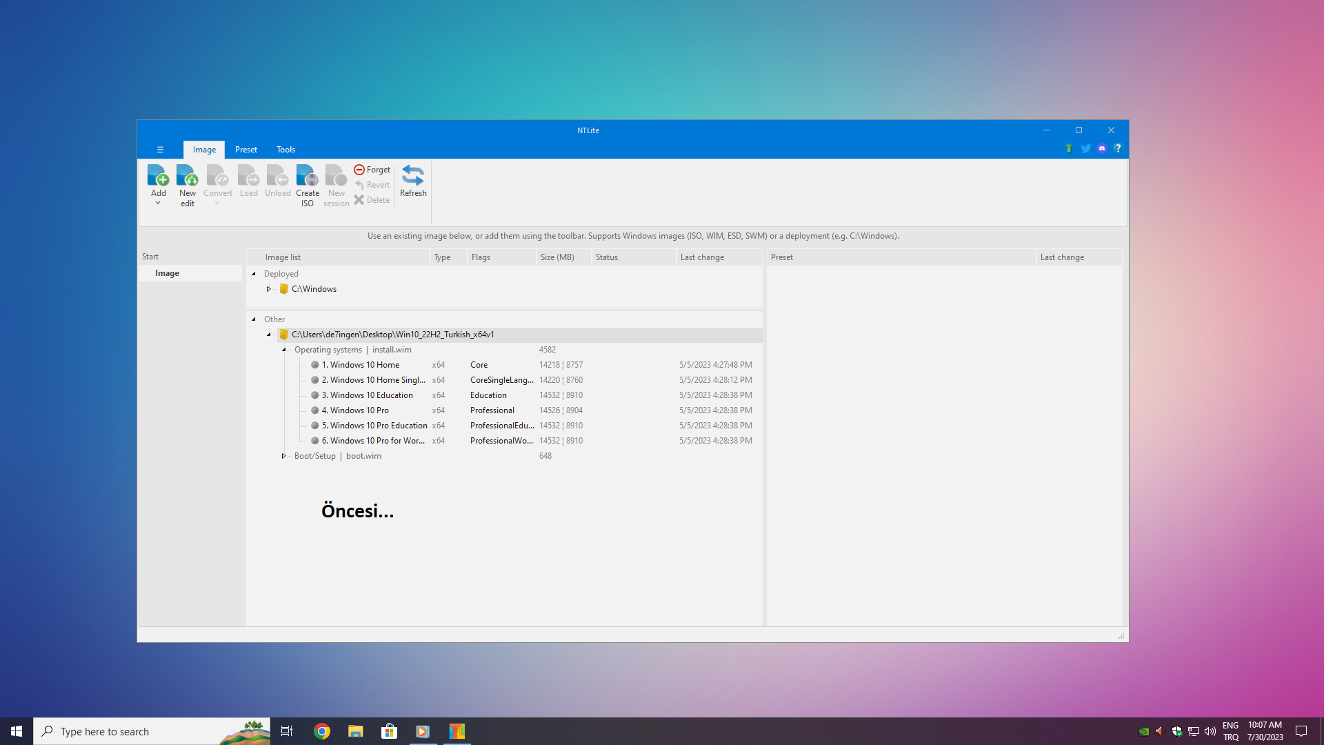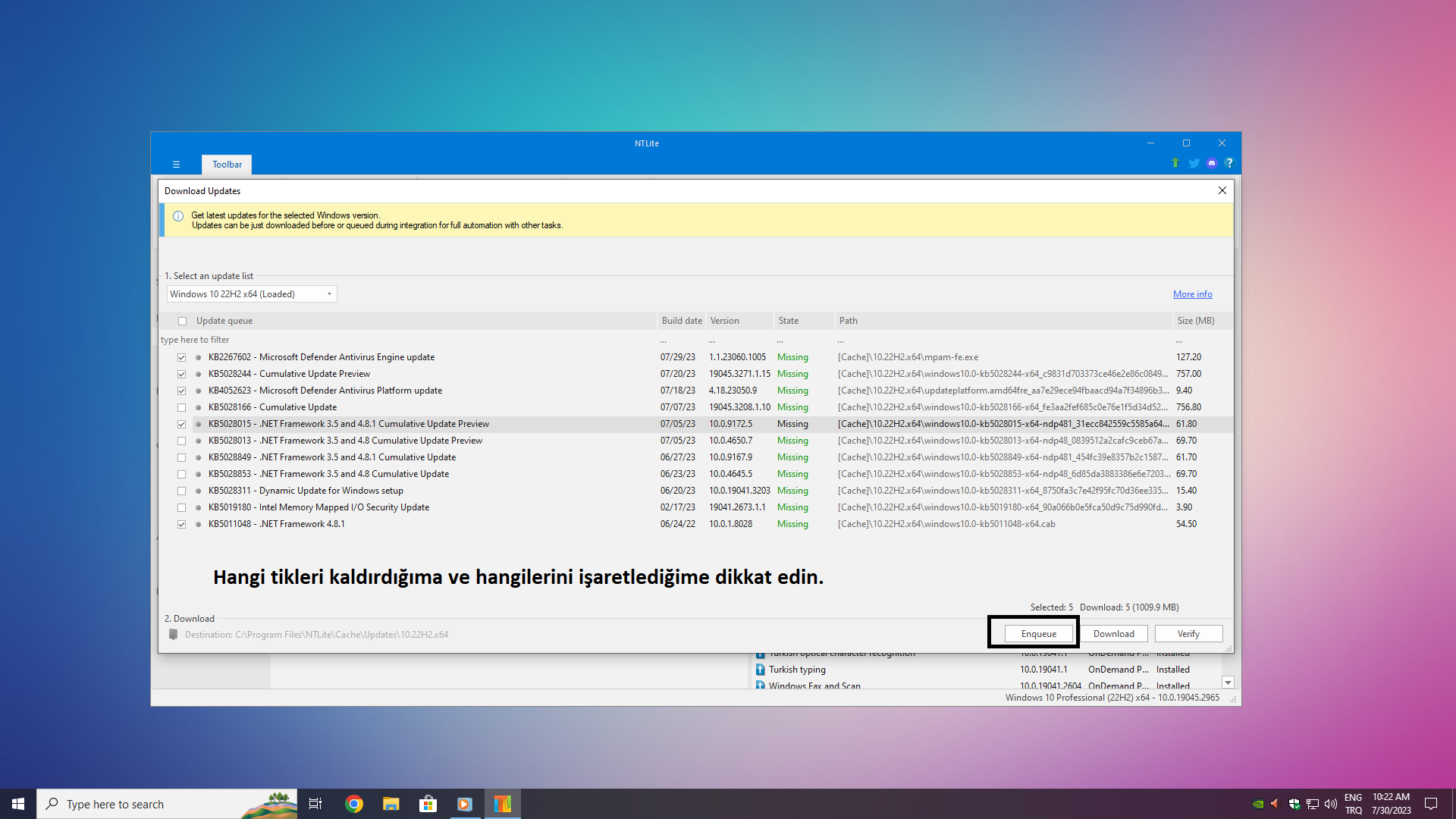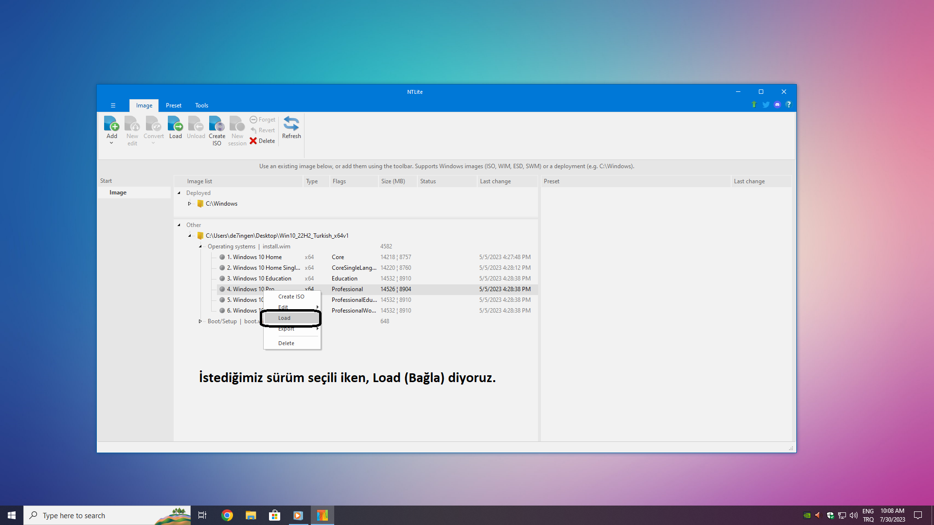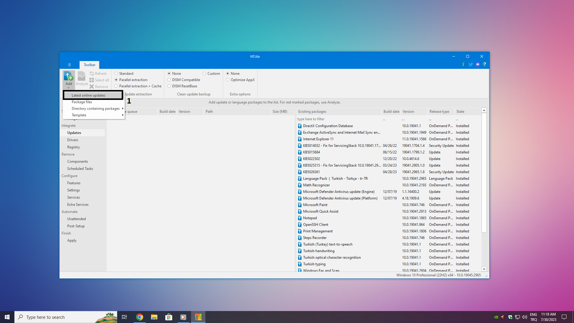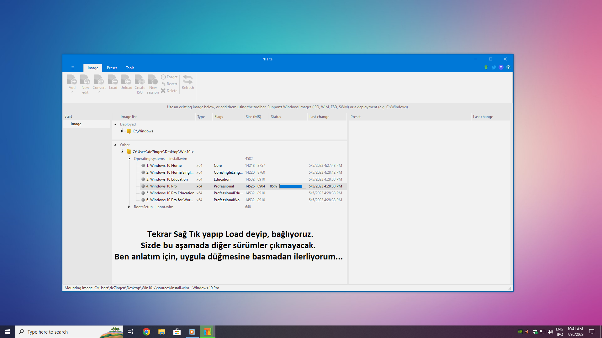 Not = kullandığım Windows dili İngilizce olduğu için, NTLite dil ayarı da İngilizce kalmıştır.