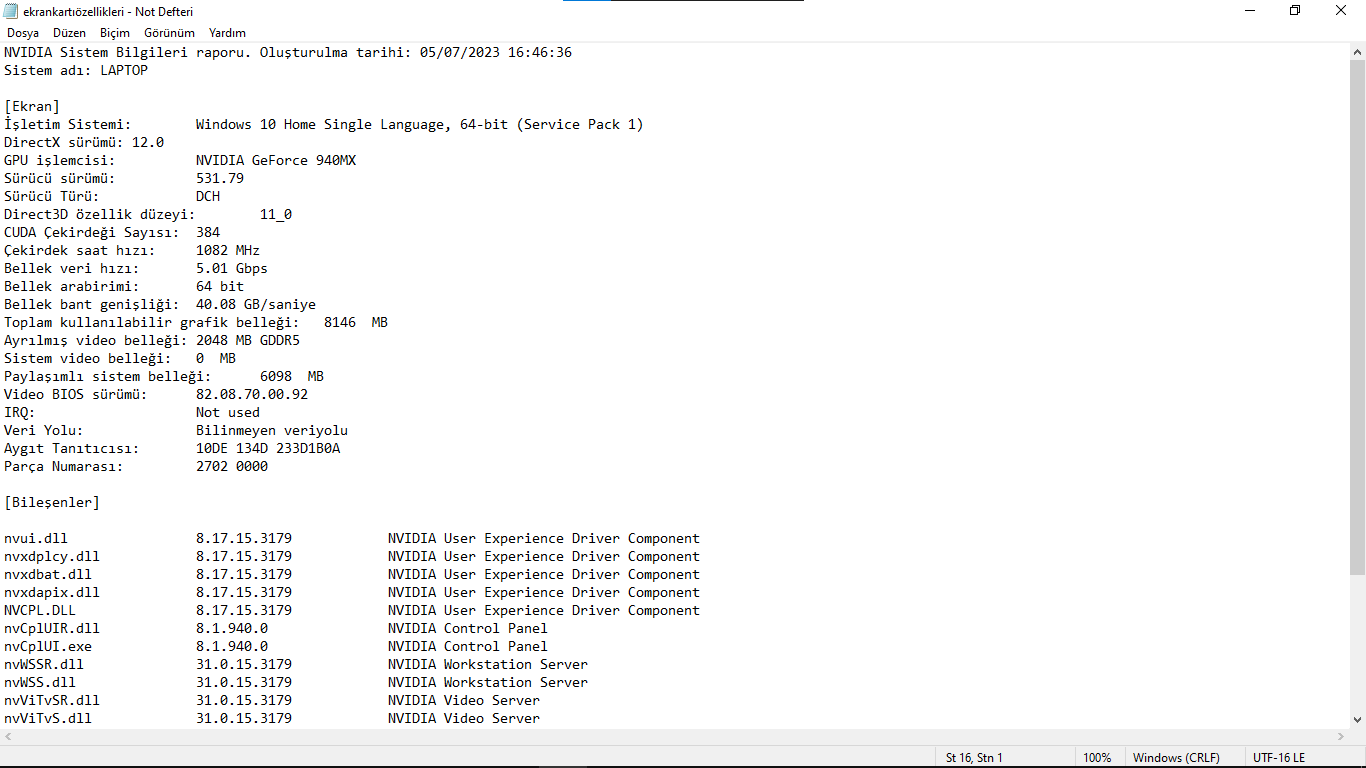 Arkadaşlar selam bende GTX 940MX bir ekran kartı var 2 GB VRAM'lı. Ama sistem raporunda şöyle bir şey yazıyor.