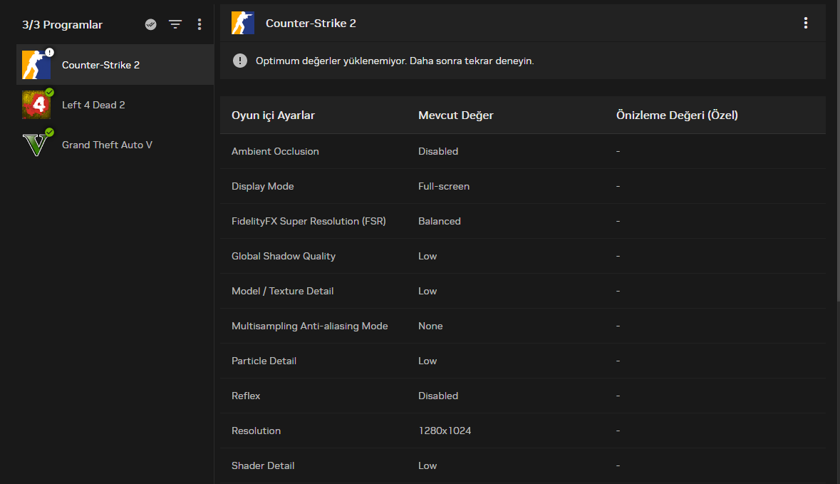 NVIDIA App üzerinde Counter-Strike 2 optimize edilemiyor