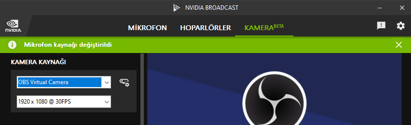 NVIDIA Broadcast ise görmüyor. Hatta yandaki butona tıklıyorum hiçbir şey olmuyor. OBS Virtual Camera'dan başka bir şey yok. Önceden çalışırken yukarıdaki gibi kameramı görüyordu ve kullanabiliyordum. Windows ayarlarında Kamera gizliliğim açık yani uygulamalar kamerama erişebiliyor zaten sorun olsa OBS göremezdi diye düşünüyorum. NVCleanstall yapmıştım belki sorun olur diye GeForce Experience kurarak temiz baştan kurulum yaptım. Driver olarak da sorun yok yani ne kamerada ne ekran kartında...