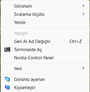 Gerektiğinde NVIDIA ekran kartını kullanır. Masaüstünde iken sağ tık yapınca NVIDIA Denetim Masası yok mu?