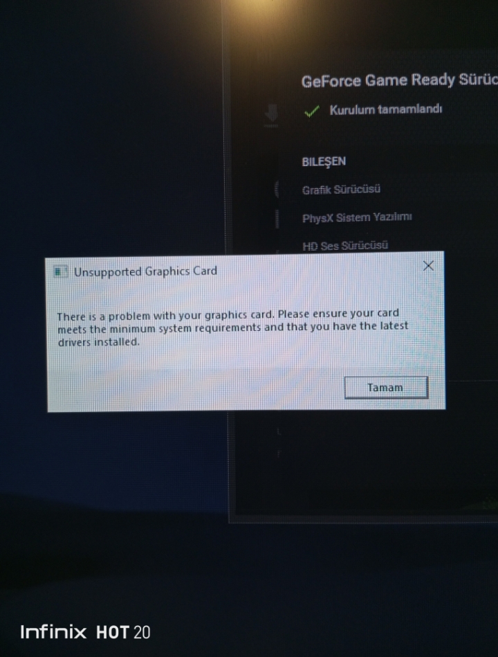 NVIDIA driver güncellemesi sonrası "unsupported Graphics Card" hatası