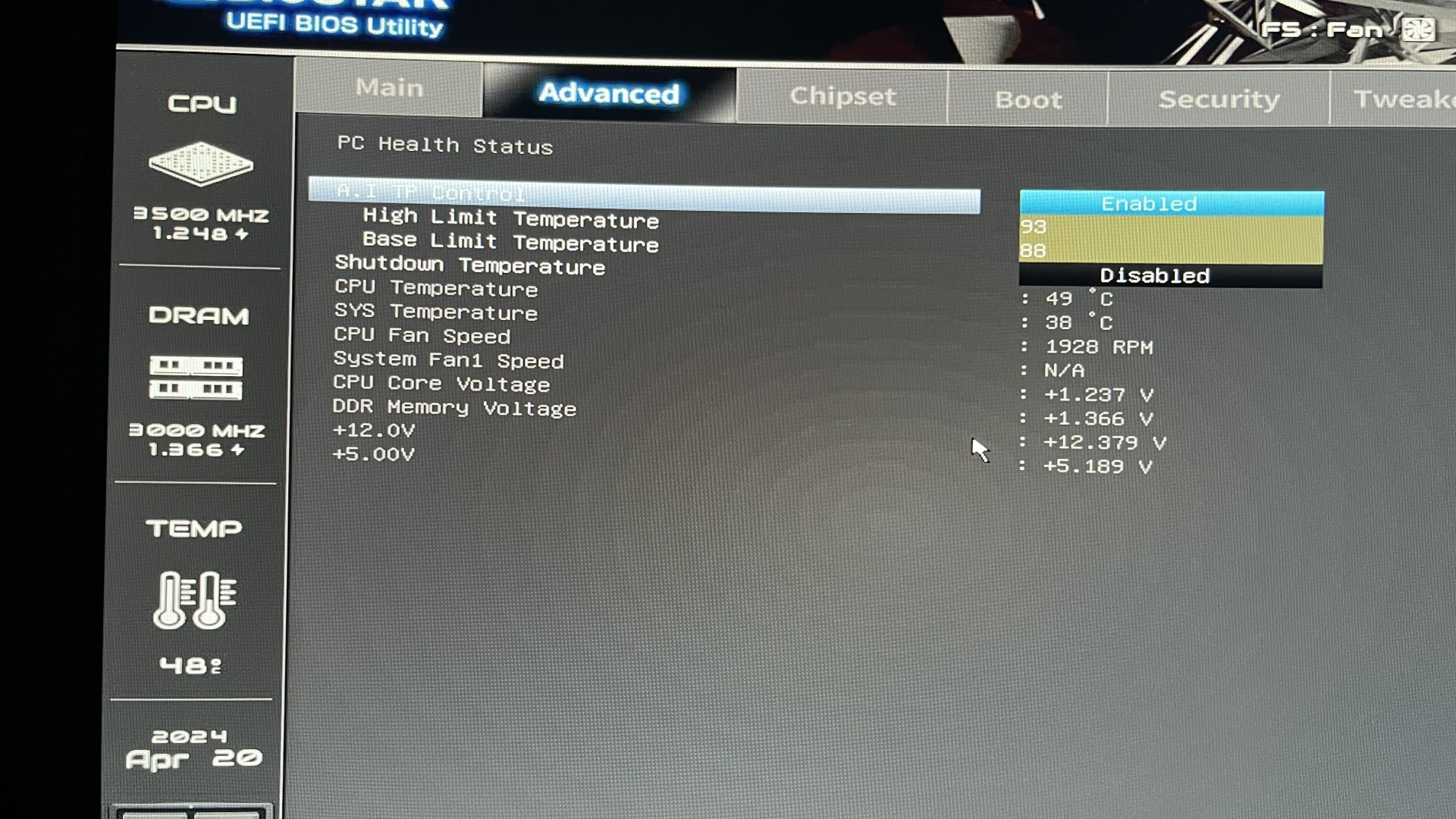 12V kanalına bak 14 volta çıkmış, başka bir PSU dene sistemini bozmadan.
