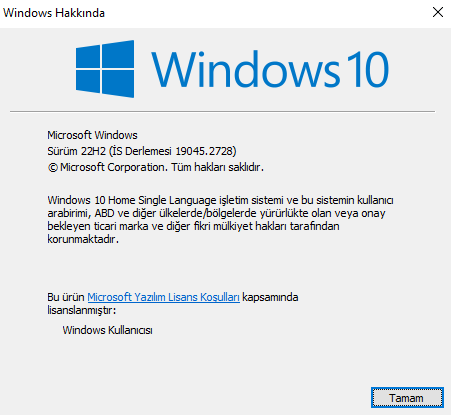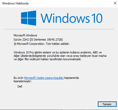 Hocam demek istediğim winver uygulamasını açıp ekran görüntüsünü yollayın.![]()