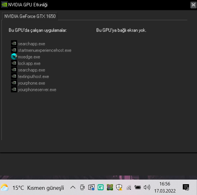 Ekran kartı sürücüm en güncel şu an ama NVIDIA GPU etkinliğinde GPU'ya bağlı ekran yok yazısı çok kafamı karıştırdı. Oyunlarımı falan NVIDIA ekran kartım ile çalıştırıyorum ve Denetim Masası'na girdiğimde sorun olmuyor. Bildiğim kadarı bu sorun Denetim Masası'na girerken vb. olaylar da çıkan bir sorundu. Ama bende öyle bir sorun yok. Bunu dert etmemın sebebi de oyunlar da hafif kasmalar yaşıyorum. Acaba bununla bir ilgisi olabilr mi diye merak ediyorum. Konu hakkında bilgisi olan varsa yardımcı olursa çok sevinirim.