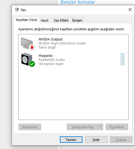 Evet ses sorunum var kulaklığıma ses gelmiyor maalesef ayrıca dediğiniz yere girdim ancak bende NVIDIA High Definition seçmem için bir seçenek sunmuyor